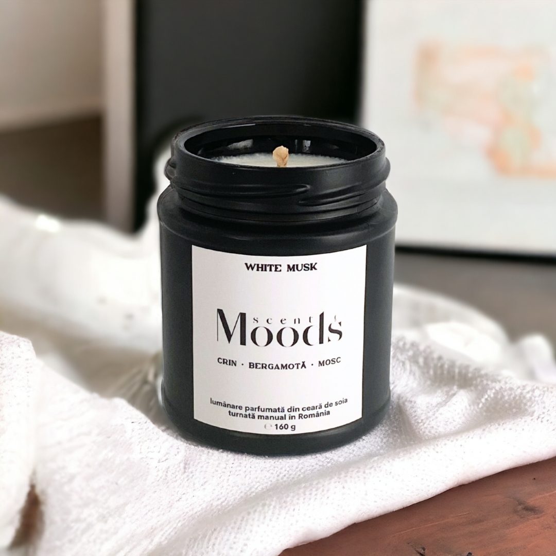 White Musk, o lumânare delicată, visătoare, cu parfum subtil, mătăsos, în note de crin proaspăt, bergamotă solară, trandafir, mușcate, mosc, tonka: bucură-te de compania ei delicată sau surprinde o persoană specială!